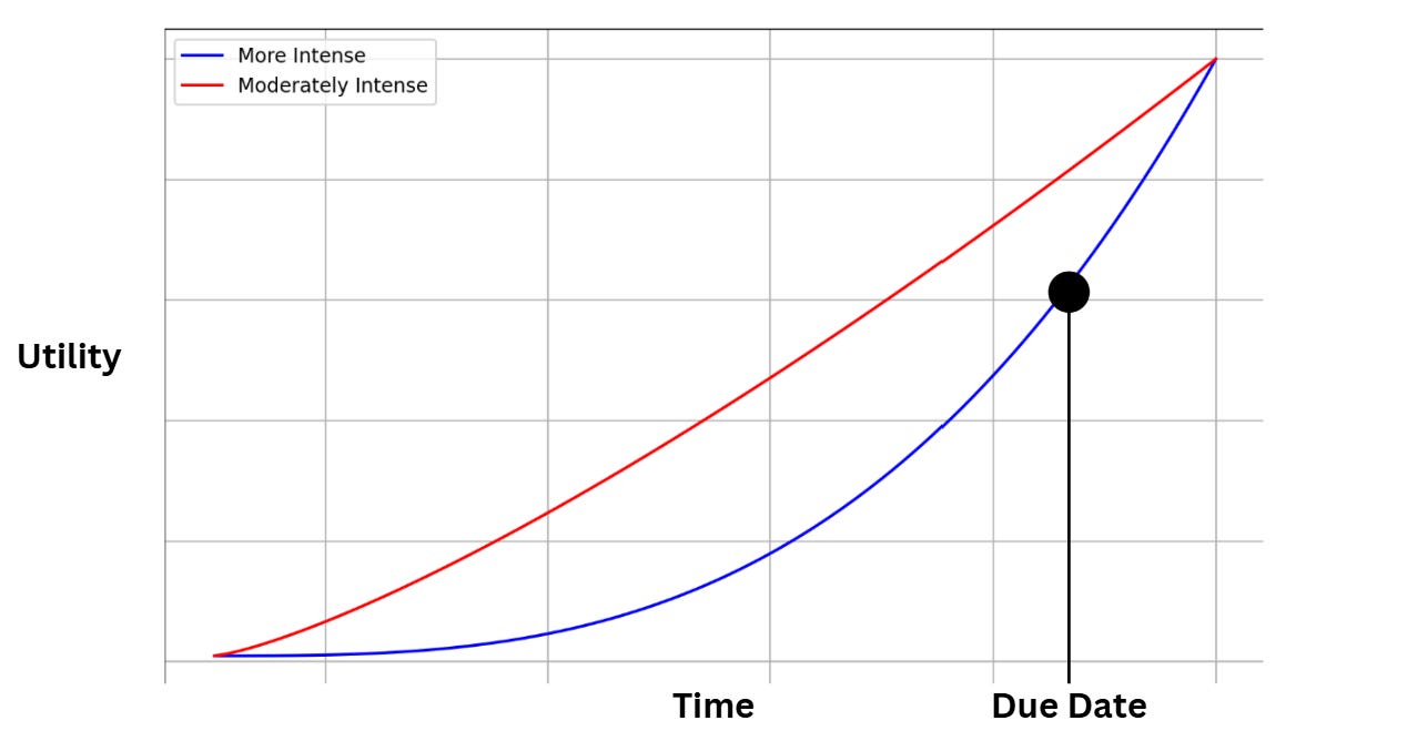 Utility, which is the perceived attractiveness of a task at a given moment and influences motivation to pursue the task tends to increase as it approaches the deadline.